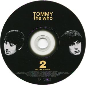 DISC1. The Original Album Duration: 02:30:28 [01:14:55 + 01:15:15] Tracklisting:01. OVERTURE [5:21]02. IT'S A BOY [0:39]03. 1921 [2:49]04. AMAZING JOURNEY [5:04]05. SPARKS [2:05]06. EYESIGHT TO THE BLIND (THE HAWKER) [2:14]07. CHRISTMAS [4:33]08. COUSIN KEVIN [4:07]09. THE ACID QUEEN [3:34]10. UNDERTURE [10:02]11. DO YOU THINK IT'S ALRIGHT? [0:24]12. FIDDLE ABOUT [1:30]13. PINBALL WIZARD [3:01]14. THERE'S A DOCTOR [0:24]15. GO TO THE MIRROR! [3:48]16. TOMMY CAN YOU HEAR ME? [1:36]17. SMASH THE MIRROR [1:35]18. SENSATION [2:26]19. MIRACLE CURE [0:13]20. SALLY SIMPSON [4:11]21. I'M FREE [2:39]22. WELCOME [4:33]23. TOMMY'S HOLIDAY CAMP [0:57]24. WE'RE NOT GONNA TAKE IT [3:28]25. SEE ME FEEL ME/LISTENING TO YOU [3:44]01. OVERTURE [5:21]02. IT'S A BOY [0:39]03. 1921 [2:49]04. AMAZING JOURNEY [5:05]05. SPARKS [2:08]06. EYESIGHT TO THE BLIND (THE HAWKER) [2:14]07. CHRISTMAS [4:33]08. COUSIN KEVIN [4:05]09. THE ACID QUEEN [3:34]10. UNDERTURE [10:08]11. DO YOU THINK IT'S ALRIGHT? [0:25]12. FIDDLE ABOUT [1:29]13. PINBALL WIZARD [3:17]14. THERE'S A DOCTOR [0:24]15. GO TO THE MIRROR! [3:49]16. TOMMY CAN YOU HEAR ME? [1:46]17. SMASH THE MIRROR [1:23]18. SENSATION [2:29]19. MIRACLE CURE [0:13]20. SALLY SIMPSON [4:12]21. I'M FREE [2:39]22. WELCOME [4:33]23. TOMMY'S HOLIDAY CAMP [0:57]24. WE'RE NOT GONNA TAKE IT [3:29]25. SEE ME FEEL ME/LISTENING TO YOU [3:36]DISC2. Out-Takes And Demos + Stereo Only Demos Duration: 00:46:38 + 00:36:09] Tracklisting:01. I WAS [0:18]02. CHRISTMAS ( Out-Take 3 ) [4:44]03. COUSIN KEVIN MODEL CHILD [1:25]04. YOUNG MAN BLUES ( Version 1 ) [2:51]05. TOMMY CAN YOU HEAR ME? ( Alternative Version ) [1:59]06. TRYING TO GET THROUGH [2:52]07. SALLY SIMPSON ( Out-Takes ) [4:10]08. MISS SIMPSON [4:18]09. WELCOME ( Take 2 ) [3:44]10. TOMMY'S HOLIDAY CAMP ( Band's Version ) [1:07]11. WE'RE NOT GONNA TAKE IT ( Alternative Version ) [6:09]12. DOGS - PART TWO [2:26]13. IT'S A BOY - Demo [0:44]14. AMAZING JOURNEY - Demo [3:41]15. CHRISTMAS - Demo [1:56]16. DO YOU THINK IT'S ALRIGHT? - Demo [0:28]17. PINBALL WIZARD - Demo [3:47]01. I WAS [0:17]02. CHRISTMAS ( Out-Take 3 ) [4:43]03. COUSIN KEVIN MODEL CHILD [1:25]04. YOUNG MAN BLUES ( Version 1 ) [2:51]05. TOMMY CAN YOU HEAR ME? ( Alternative Version ) [1:59]06. TRYING TO GET THROUGH [2:52]07. SALLY SIMPSON ( Out-Takes ) [4:11]08. MISS SIMPSON [4:18]09. WELCOME ( Take 2 ) [3:43]10. TOMMY'S HOLIDAY CAMP ( Band's Version ) [1:07]11. WE'RE NOT GONNA TAKE IT ( Alternative Version ) [6:12]12. DOGS - PART TWO [2:30] |
